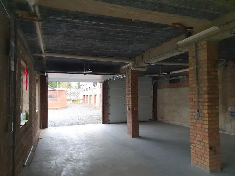 Geräumige Garage von circa 96 m² Fläche (7,92 m x 12,14 m), ideal um mehrere Fahrzeuge, wie Automobile, Wohnmobile, usw. sowie andere Gegenstände sicher unterzubringen. Zwei elektrische Sektionaltore, eigener Stromanschluss, glatter, ebener Betonboden. Sehr sauber.